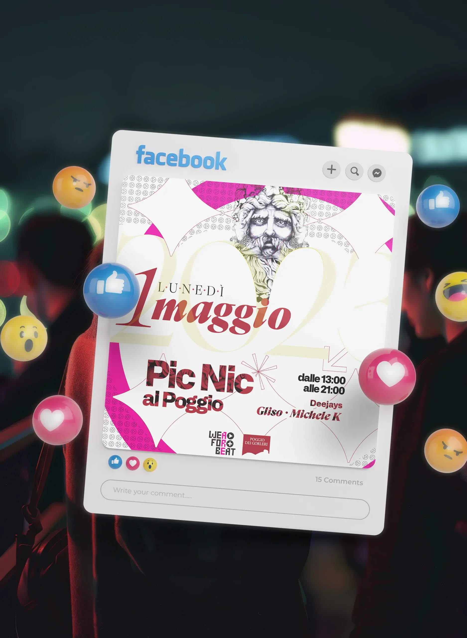 La giovane ma consolidata Associazione We Are For Beat, mi ha incaricato in veste di featuring creativo, la realizzazione di due post per i loro eventi al Poggio dei Gorleri.
